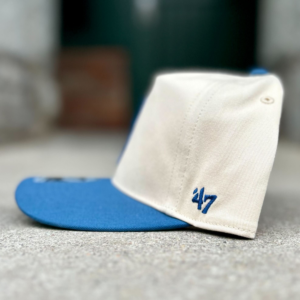 The evolution of our fan favourite Two Tone Hitch Hat by ‘47 Brand. This version features the iconic 1949-57 Brooklyn Dodgers logo paired with the addition of the 1951 National League 75th Anniversary Patch as a side patch, both embroidered on a cream crown matched with a blue brim, button and strap. This exclusive cap won’t be around for long. Grab yours now!