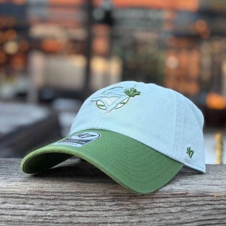 This Toronto Blue Jays Clean Up dad hat features a light blue cotton crown paired with a contrasting green brim — a subtle nod to open skies and fresh-cut outfield grass. The front logo is embroidered in tonal blue and green, giving it a refined, layered look that feels vintage without being loud. Understated, nostalgic, and built for everyday wear — on game day or any day.