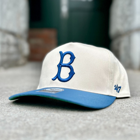 The evolution of our fan favourite Two Tone Hitch Hat by ‘47 Brand. This version features the iconic 1949-57 Brooklyn Dodgers logo paired with the addition of the 1951 National League 75th Anniversary Patch as a side patch, both embroidered on a cream crown matched with a blue brim, button and strap. This exclusive cap won’t be around for long. Grab yours now!