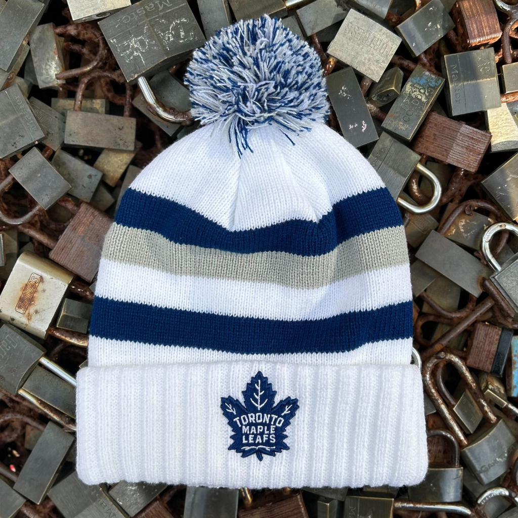 Shop our unique selection of exclusive officially-licensed NHL Toronto Maple Leafs hats, tees, sweaters, jerseys, and more! Every season we release new exclusive styles featuring the Leafs most unique historic logos, on classic, retro high-quality garments. Shop in-store in Toronto or shop online. Stand out from the crowd at Scotiabank Arena in our limited edition vintage-inspired hats, shirts, and jerseys. Or get the perfect gift for the hard-to-buy for Leafs fan who has everything.