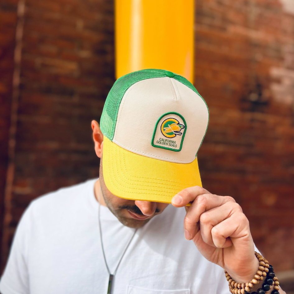 Throw it back to the NHL's original expansion era in this retro Golden Seals Trucker Cap!