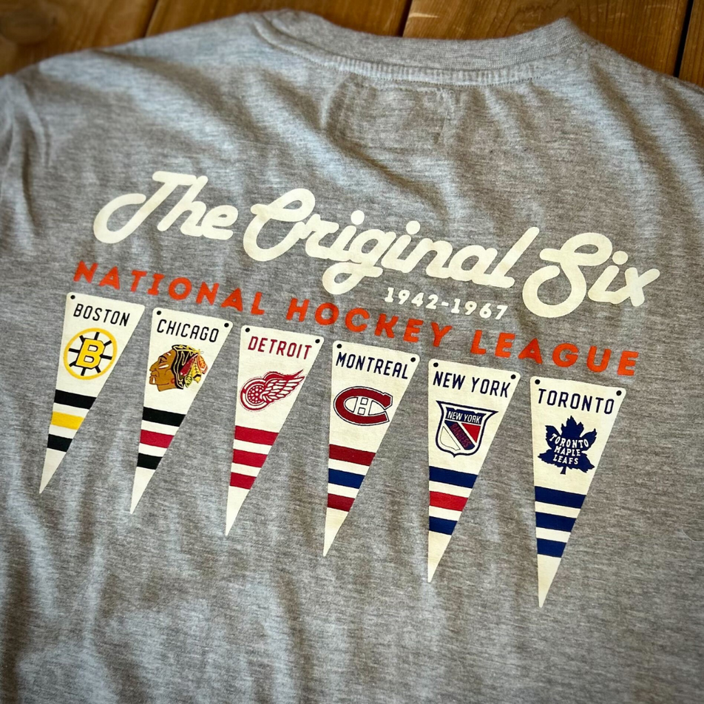 Original Six Vintage NHL Team Pennants Tee (Grey)