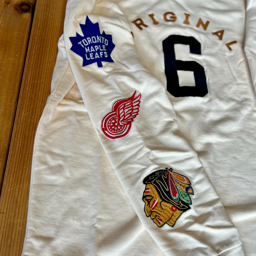 Retro Details: Features the Original Six name on the front with the 6 Original Six team logos across both sleeves